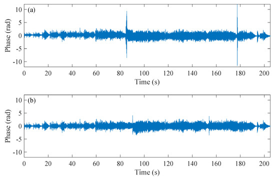 The plot of the retrieved sound signals. (a) the retrieved phase signal without WCSA; (b) the retrieved phase signal with WCSA.