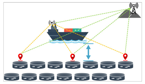 It is worth mentioning that LTE-Maritime is a project that was recently launched in this country with the aim of providing a communication system that supports high data rates of the order of megabits per second in a communication range covering 100 km. The basic idea of the LTE-Maritime project was to apply to the maritime domain the LTE technology currently used in the land region [43,44]. The LTE-Maritime project is a system that uses modern wireless technologies to support and facilitate the communication of ship-to-shore data, anytime and anywhere. Vessels that have received the location information of the aquaculture farms beforehand through the LTE-M system will sail at a safe distance so that they will not cause damage to farm structures.