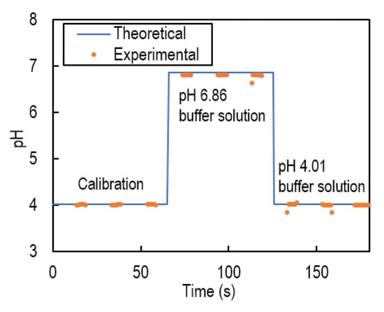 pH glass electrodes are the most established and commercially available pH working electrodes, but, in recent years, Ion Selective Field Effect Transistors (ISFETs) have been widely used. As long as the surface of the ISFET’s insulating film is not contaminated, the ISFET can be used without drift. Although surface contamination by rumen fluid is a concern, a pH drift of ±0.1 or less was achieved in a rumen measurement for 18 days by using an FET-based pH sensor with a protective layer in a previous study []. It should be noted that contamination is not fatal to the electrode.