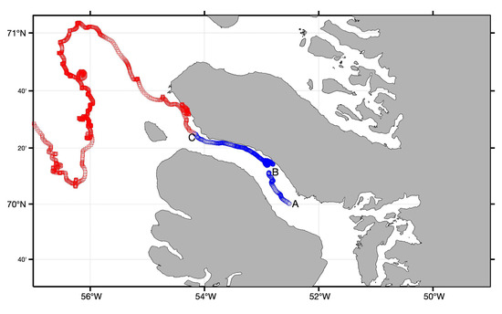 - Carlson, D.; Boone, W.; Meire, L.; Abermann, J.; Rysgaard, S. Bergy Bit and Melt Water Trajectories in Godthåbsfjord (SW Greenland) Observed by the Expendable Ice Tracker. Front. Mar. Sci. 2017, 4, 276. [Google Scholar] [CrossRef]