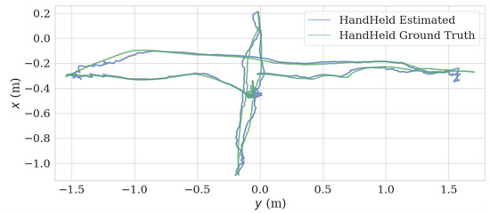 Estimate trajectory and ground truth from x–y plane of hand held test.