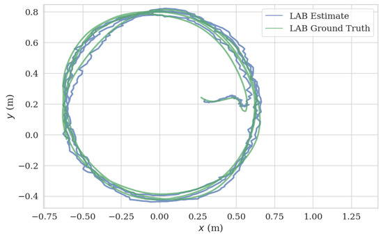 Estimated trajectory and ground truth from an x–y plane of lab environment test.