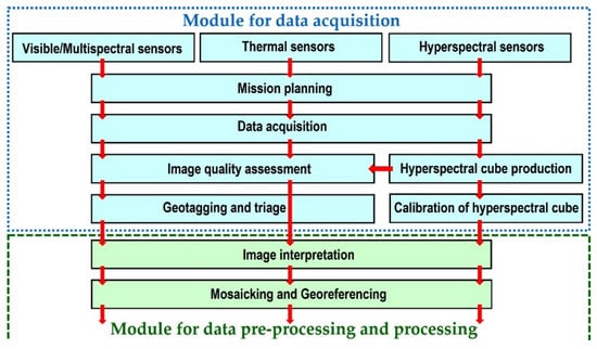 Data fusion in AIDSS is not performed within the data acquisition module, but after processing the collected materials in the third module and, therefore it will not be explained any further in this paper. Here, it is important to stress that data fusion is not performed in real time, as with other multi-sensory systems, for example [] or []. Therefore, it is important to define the purpose of multi-sensory imaging well, in order to select optimal sensors and adequate platforms for such a system.