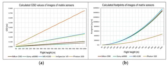 It should be emphasized that this module is not intended for photogrammetric surveys or planning, and the image collection is not always conducted so as to satisfy the strictest geometric conditions for their use (ensuring longitudinal overlaps greater than 60%, or transversal overlaps greater than 20%) [,]. However, it is still possible to mosaic the images and geocode the mosaics. The technical characteristics of the current sensors in the module allow enough overlap for photogrammetric surveys (particularly with a flight height of more than 500 m), but this is not a priority in conducting aerial non-technical surveys for humanitarian mine action purposes.