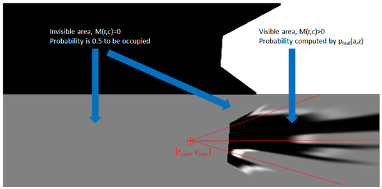 By using visibility masks, we avoid considering the hood of our own vehicle as an obstacle. Additionally, in a later processing stage, the visibility mask will help us establish the probabilities of the grid cells to be free or occupied.