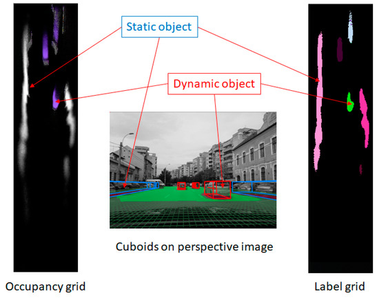 The first two methods presented in Table 7, described in [9] and [11], are based on convolutional neural networks. Their main limitation is the reliance on obstacle classes for the extraction of 3D information and orientation and, therefore, they are limited to detecting obstacle categories as seen by the network during training. The method described in [32] uses stereovision along with CNNs to generate 3D object proposals, in the form of oriented cuboids, after the scene is processed at voxel level. The method presented in [23] is based on stereo-vision cameras and dynamic occupancy grids, being one of the main ideas behind the results described in the current paper. While the stereovision brings useful 3D information, allowing for a higher detection range and accuracy, it requires very precise, offline calibration, and does not integrate easily other information sources.