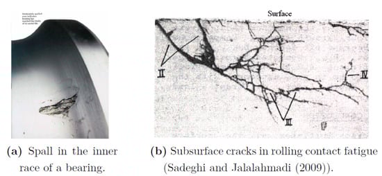 Diagnosing the spall size enables the operator to decide if the bearing should be replaced. The decision should consider several parameters such as the cost of the bearing, its role in the system, etc. Furthermore, bearing spall size diagnosis can be part of bearing degradation prognosis, which is a great challenge. Many attempts have been investigated to address this challenge. Zhang et al. [15] integrate three main components including principal component analysis, hidden Markov model, and an adaptive stochastic fault prediction model. Lu et al. [16] propose a prognostic algorithm using the variable forgetting factor, recursive least-square, combined with an auto-regressive and moving average model. Li et al. [17] propose a prognostics methodology based on improved R/S statistic and Fractional Brownian Motion (FBM). Ayhan et al. [18] propose to run a bank of parallel-running remaining useful life predictors to mitigate the risk of getting unstable results in contrast to a single predictor.