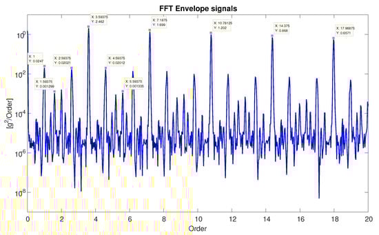 Figure 4. Simulated data from the PHM model in the order domain. - TSFRESH: TSFRESH (Time Series FeatuRe Extraction based on Scalable Hypothesis tests) is a python package added in 2016 [5]. It automatically calculates many time series characteristics, the so-called features. This package includes hundreds of features from various fields. The features can be statistical equations like mean or skewness or can be features from different fields like absolute energy of the time series, Fourier coefficients of the one-dimensional discrete Fourier Transform for real input by fast, or the number of peaks of at least support n in a time series x.