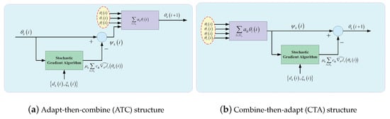 Generally speaking, there are two basic forms of distributed estimator with diffusion strategy: the adapt-then-combine (ATC) structure and the combine-then-adapt (CTA) structure [,,,].