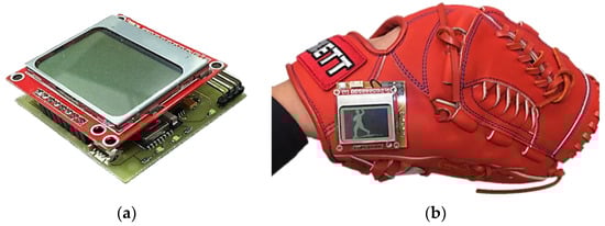 Display device of wearable assist system (a) LCD display device, (b) the device attached to the baseball glove.