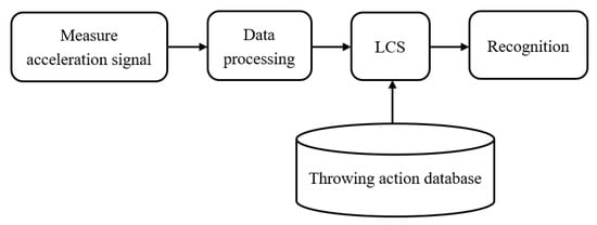 The recognition technique incorporated in this work can be divided into three parts, namely signal measurement, signal processing and conversion, and instant identification. As we are developing a wearable device to be worn on the forearm and upper arm, it is important to design the device in a manner such that all the sensors and microcontroller circuits are integrated into the device in a miniaturized form. An embedded system is developed to measure the upper extremity throwing action signal by analyzing the acceleration signals extracted from the throwing action and the longest common subsequence (LCS) method is used for identification of the six serial phases of the throwing action. LCS is a similarity measure that was utilized effectively for string matching [25]. It can be considered a global alignment method robust to noise and outliers. The LCS method is a variation of the edit distance and its basic principle is matching two sequences by allowing them to stretch, without rearranging the sequence of the elements but allowing some elements to be unmatched [26]. It is to be noted that LCS tasks can be solved using a brute-force approach, in which all feasible subsequences of one of the strings are found followed by testing of each string to check whether it is a subsequence of other string [27,28]. Even though there is a similarity in the basic idea of LCS with that of dynamic time warping (DTW), as both lineup test and template sequence temporally based on feature distance costs, the robustness of LCS to noise and outliers make it more suitable for action recognition [29]. The throwing action assist system is developed in a user-friendly manner. Appropriate notifications and reminders allow the user to repeat the cycle to learn, rehabilitate, and correct posture and achieve the correct upper extremity throwing action.