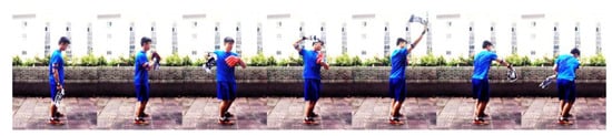 The sequence of the correct throwing action phases obtained from this measurement is summarized in Table 2. We have carried out continuous action recognition using sequence comparison. For a systematic comparison of the processing method, Steps 1–6 are divided into a sequence of 1–2 characters, followed by overlapping of the sequence to recognize whether the sequence is continuous. A complete sequence of actions will consist of the following sequential steps: