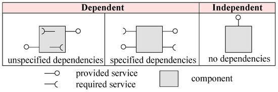 Components with no dependencies are program units with only specified provided services. Web services [30] and components in the X-MAN component model (X-MAN) [31,32,33] do not have required interface; hence, the encapsulated component category includes X-MAN components and web services [10].