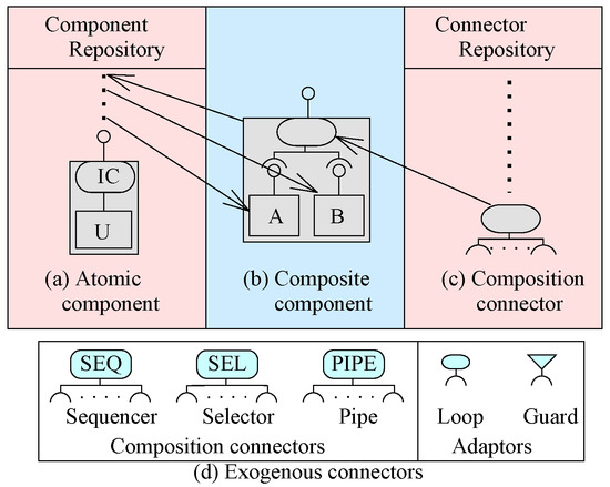 - Lau, K.K.; Velasco Elizondo, P.; Wang, Z. Exogenous Connectors for Software Components. In Proceedings of the Eighth International SIGSOFT Symposium on Component-based Software Engineering, Venice, Italy, 5–8 April 2016; LNCS 3489. Springer: Berlin/Heidelberg, Germnay, 2005; pp. 90–106. [Google Scholar]