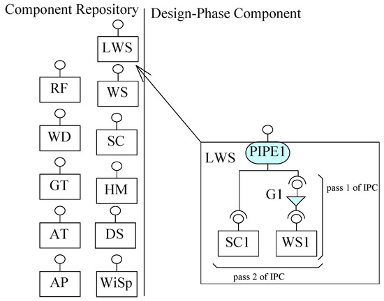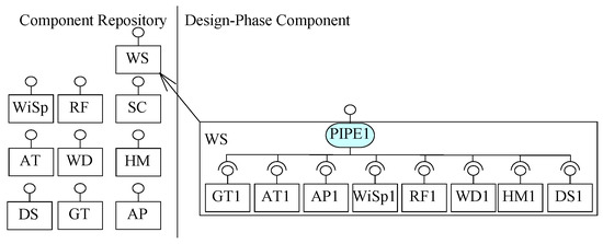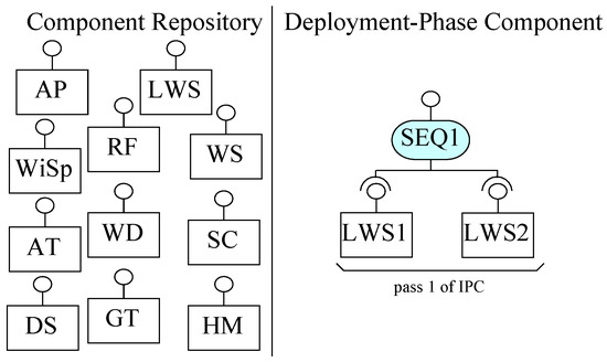 For the system to fulfil Requirements R1–R8, we need many weather stations located at different areas. Hence, using the aforementioned identified atomic components from the EX-MAN repository, we need a composite component WS (weather station from R8). In the design phase of system construction, a composite component can be created by using repository components. For the construction of a composite component in the design phase or a deployable system referred to as deployment-phase component in Figure 4, our defined process of incremental composition defined in Section 4 is used.