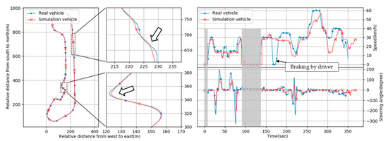 The maneuver determines the movement of the vehicle, that is, the actions of actuators the vehicle should take in a given environment. It selects actions based on the current environment (e.g., highway drive or traffic jam drive), and performs low-level functions such as maintaining speed or following a car. In the autonomous driving system, these functions are performed by low-level actions for routing, path planning, speed profile, and signals. Finally, it results in a steering control value to determine the driving direction of the vehicle, a speed control value to determine the driving speed, and a signal control value to transmit visual information to the nearby vehicles. Therefore, the information of the maneuver can be recorded by recording steer, speed, and signal controls, as depicted in Figure 4.