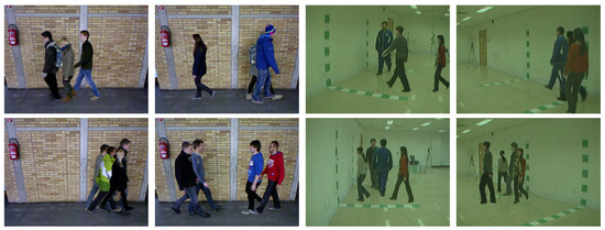 Previous datasets do not contain any type of people occlusion, with the exception of TUM-IITKGP dataset [7]. It also contains multiple subjects in the scene, but they only try to identify the main subjects, considering others as occluding items. Therefore, gait recognition methods for multiple classifiable subjects are not studied. Using this specific dataset, several studies regarding how occlusions affect gait recognition have been performed. In Reference [4], they artificially degrade the visual quality of video sequences following three different frame degradation distributions. Then, perturbed silhouettes are reconstructed using the Balanced Gaussian Process Dynamic Model (BGPDM). Lately, the same authors [5] generate static and dynamic occlusions with different size, position and number of frames.In Reference [6], artificial (salt and pepper), static and dynamic occlusions are generated. With salt and pepper occlusions they simulate changes in the background of the scene. In the static occlusions, an object is inserted in the lower area of the image, which contains the most relevant information about the step. Finally, in dynamic occlusions, a moving object distorts the human silhouette.