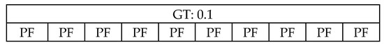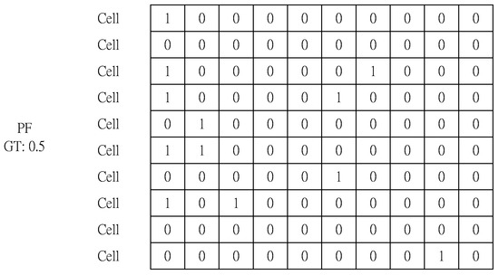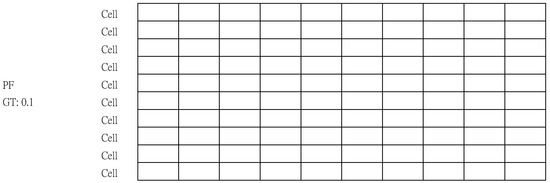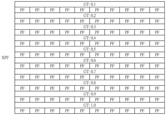 In the sixth step, the PFs are once again expanded to N times eXtended PF (XPF). In this step, the PFs are not only expanded by N times, but the GT of each PF is increased by S steps. That is, S is incremented by S each loop (S = {0.1, 0.2, 0.3, …, 0.8, 0.9, 1.0}). Figure 7 shows the result of step 6.