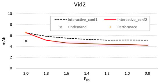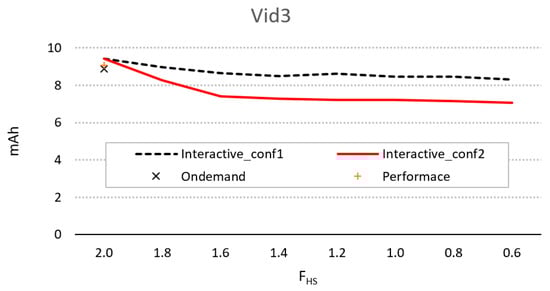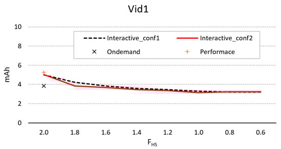 Figure 8 shows the difference in energy consumption for the parameters of conf1 and conf2, using different values of Fhs and compared to OnDemand and Performance. As can be seen, with no activity in the sequence, both conf1 and conf2 provide better energy performance compared to Ondemand, although in both cases it is also necessary that Fhs < Fmax.