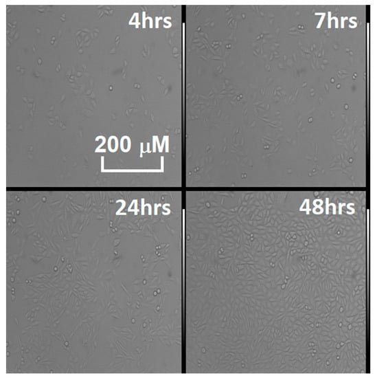 Cells were plated in the Petri dishes with the same starting concentrations (which was estimated using a gridded glass and the optical microscope): ~250,000 units. From these, the cells were left in groups of three Petri dishes each, in the incubator (kept at 5% CO2 as standard preventive measure to avoid contamination from bacteria, at a temperature of 37 °C) at the same time, and then tested at different set hours and days, so that the incubation time for each group was from 4 to 48 h. For all cell samples, these two parameters were critical to define both their changes and state of proliferation during the test, and thus the increase of the plated cells’ population.