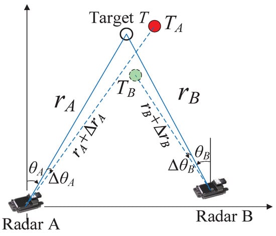 where and denote the real range and angle measurement of target i for sensor s, respectively. The and represent the range bias and angle bias, respectively. Therefore,