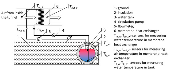 The diagram (Figure 3) presents the heat storage system in the stone-bed accumulator, while the diagrams (Figure 4 and Figure 5) present the heat storage system in the other analyzed accumulators. Tomatoes (with a density of 2.1 plants/m2) were grown during the experiment.