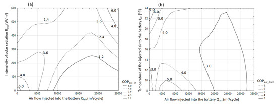 Changes in the COP coefficient taking into account energy supplied to the battery and useful energy.