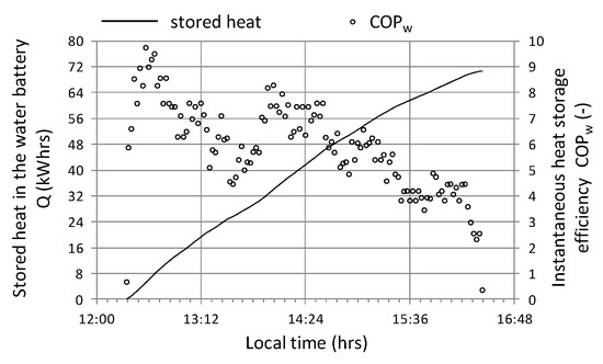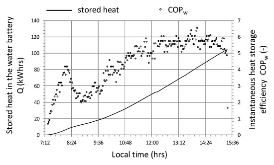 For a 2-min interval, the amount of heat stored in the water accumulator was determined in accordance with the relationship (7):