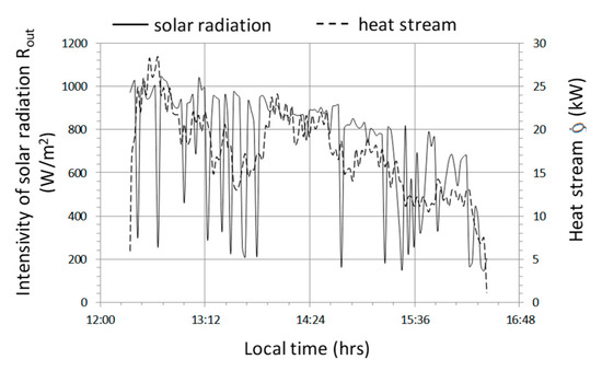 Based on the relationship (7), the instantaneous power of the heat stream forced into the accumulator was determined in accordance with the relationship (8):
