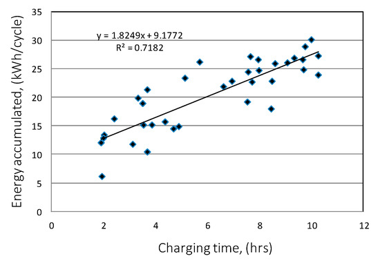 Figure 10 illustrates the charge and discharge cycles in which the total amount of solar radiation in the cycle was 5.5 kWh.