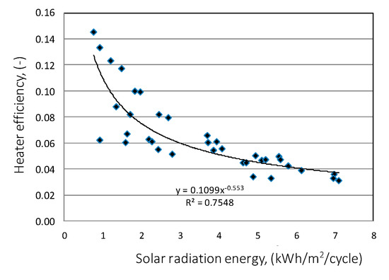 The energy efficiency of the heat storage system in the phase change material was referenced to the system’s work cycle. The energy efficiency of the PCM accumulator was determined according to the relationship (15):