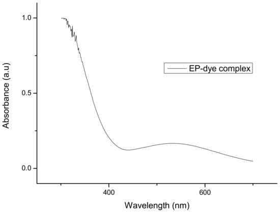 The creation of the EP–Fe2+ complex is confirmed by the change in the color of the dye from light green to blood red (in acidic condition, pH 3–5), dark violet (in neutral, pH 6–8) or dark brown (in alkaline medium, pH > 8) after the addition of epinephrine hydrochloride solution. The pH of the environment, in which the complex is formed, affects not only the color of the solution, but also the light absorption, which is the highest at wavelength λ = 530 nm at a pH of 8.3. Creation of the EP–Fe2+ complex presents similar results to those obtained by J. Korać et al. [].