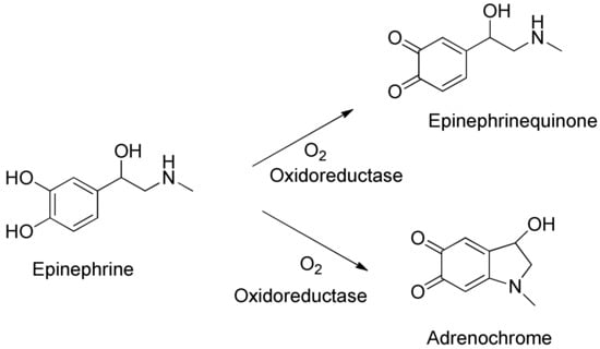 Schematic representation of the enzymatic process of epinephrine oxidation and exemplary products.
