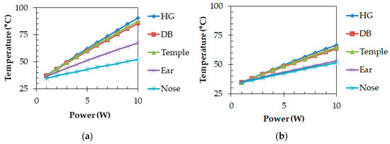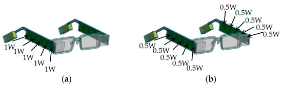Wearable devices have become popular as state-of-the-art electronic devices, such as smart watches, smart glasses, smart clothing, and fitness trackers, have been made commercially available for consumer and industrial uses. Currently, smart watches are the wearable device with the largest market size. However, smart glasses have also been released by many companies [1,2,3,4,5,6,7] and can be used for various purposes such as medical care, health, learning/education, and entertainment. Differences in the uses between the smart glasses and the wrist-worn wearables such as smart watches and fitness trackers come from the differences between wrists and eyes. Smart glasses have advantages that users can look at various things such as maps (e.g., current location) and movies with augmented reality (AR) through a display, and their eye and facial movements can be recognized for medical care, health monitoring, and dozing prevention. In the future, heat issues will become more serious because smart glasses will require faster central processing unit (CPU) and larger memory to deal with enormous amounts of data. Therefore, thermal design is becoming one of the key technologies for future wearable devices.
