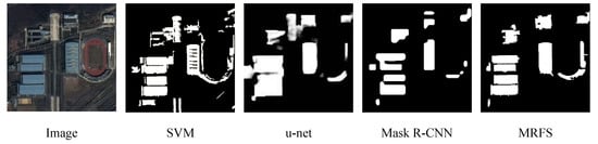 Comparison of MRFS, Mask R-CNN, SVM and KNN(k-Nearest Neighbor) on large building extractions.