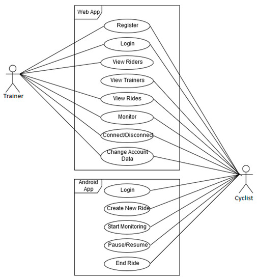 The users can interact with the system using two applications: An Android app and a web app. Riders can only use the first application while both riders and trainers can use the second app. The user’s use cases diagram is presented in Figure 5.