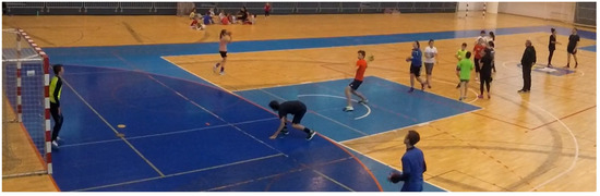 Handball rules are well-defined and prescribe permitted actions and techniques, but during training, when adopting and practicing different techniques or game elements, the coach changes the rules to maintain a high level of player activity and a lot of repetition. Players then preform several sets of exercises in a row to train and improve certain techniques or actions, and to learn to position themselves properly in situations that imitate real game situations. In training sessions, each player also usually has his own ball, to reduce the waiting time to practice techniques and to train handball skills as quickly as possible. For example, a shooting technique involves a player that shoots the ball towards the goal and the goalkeeper that moves to defend the goal. Other players are waiting their turn to perform this activity or they gather their balls on the playground and then run to their position in the queue, as shown in