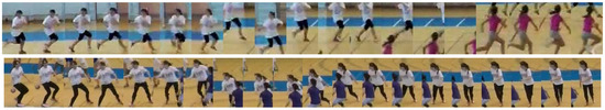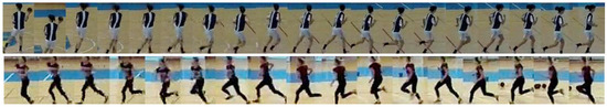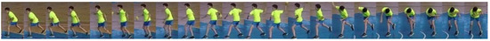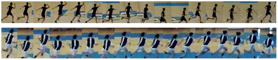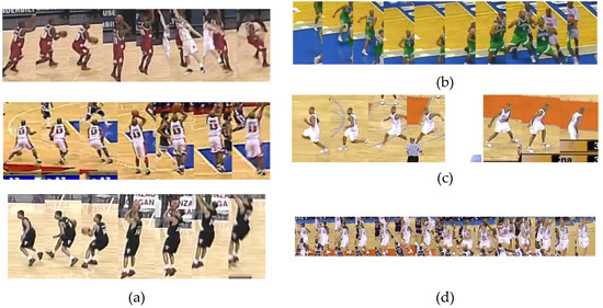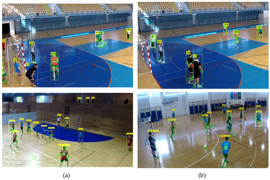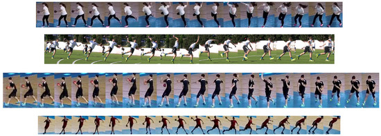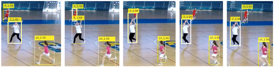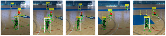 Figure 17 shows a collage of thumbnails that present good examples of player tracks that include all correctly detected bounding boxes on the frames in the sequence. As each player performs a particular action in a specific way, the number of frames is variable, even when performing the same handball action or technique according to the same rules.