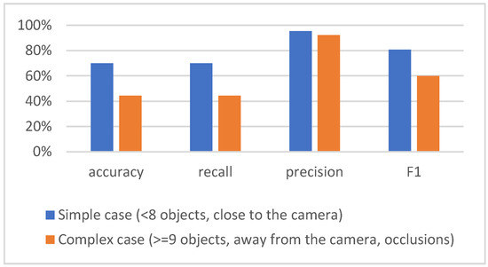 The results of the detector greatly depend on the complexity of the scene, which in the used dataset depends on the number of players on the scene and their size, as well as on the distance from the camera and the number of occlusions. For example, if there are up to eight players on the scene, close to the camera, the results are significantly better than in the case when there are nine or more players on scene that are far from the camera and occlusions exist, as shown in