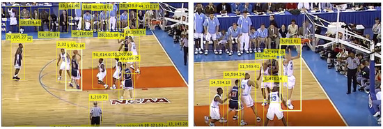 The track results exhibit similar properties as on the handball dataset, with problems stemming from the same sources—player detection, tracking, or activity measure. The difference is that basketball has fewer players on the field, smaller terrain, bigger ball, and the player’s occlusion in basketball is even greater than in handball scenes because of the speed and difference in the rules of the game. Additionally, in our handball dataset, the actions are defined from the player’s perspective and they correspond to individual handball techniques.