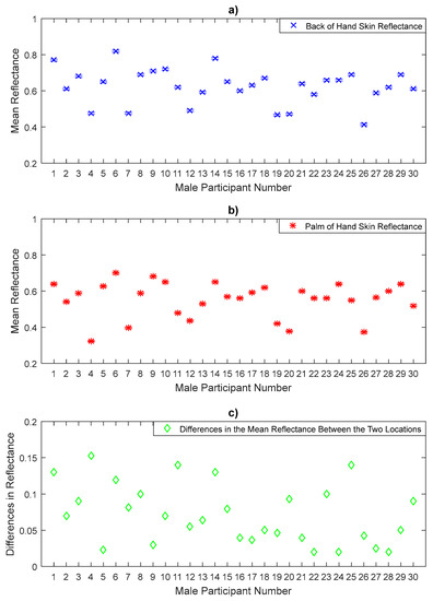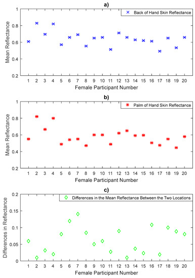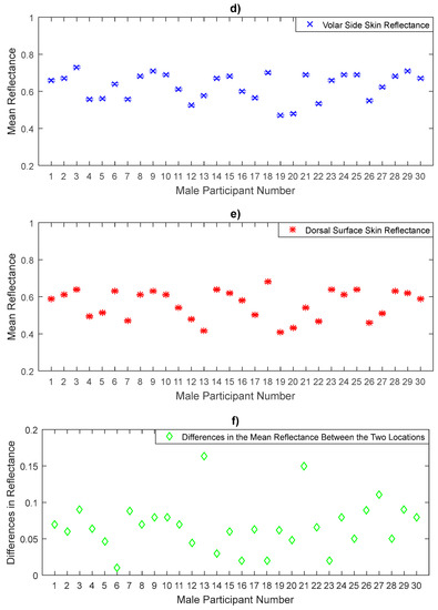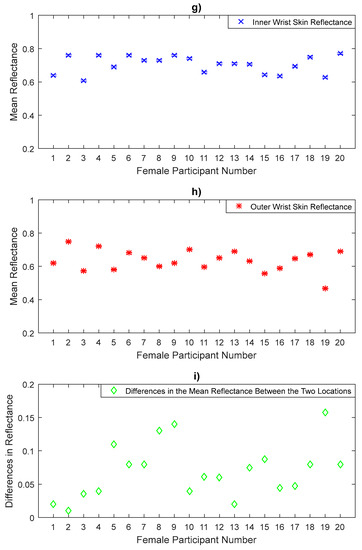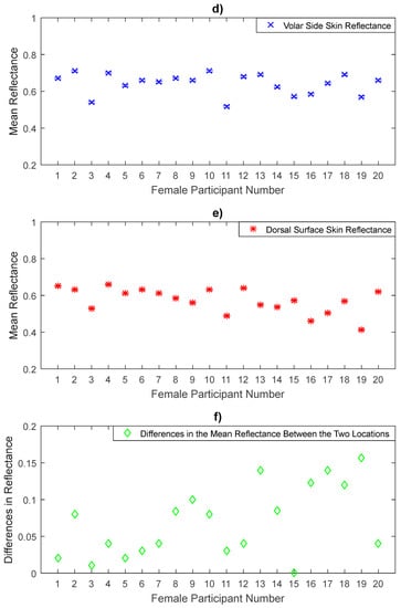 3.4. Comparison in Skin Reflectance between Female and Male Participants