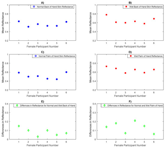 3.5. Skin Reflectance for Female Participants Under Normal and Wet Skin Conditions