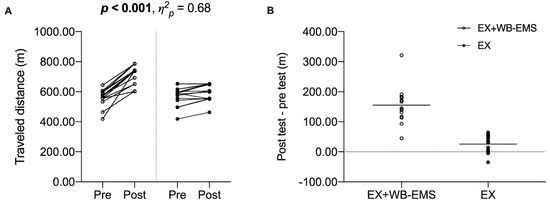 | EX + WB-EMS | 41.96 ± 19.49 | 41.87 ± 21.47 | 0.01 [−13.42, 13.43] | |||