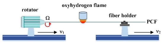 Schematic diagram of twisted photonic crystal fibers (PCF) by use of an oxyhydrogen flame.
