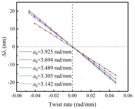 The linear fitting between the applied twist rate and wavelength shifts for the LFTPCFs with various α0.