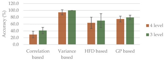 4.1. The Role of FD-Based Single Features and Their Evaluation in Binary and Multiple-Level Classifications