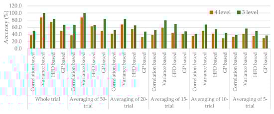 3.3. Classification Results of Combined Features Based on n-Trial Averaging