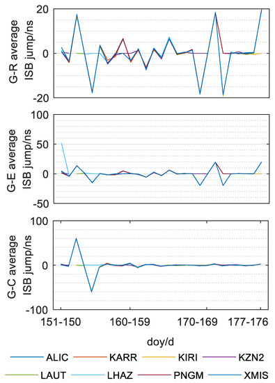 Jump of the mean ISB parameters of G-R, G-E and G-C in adjacent days.