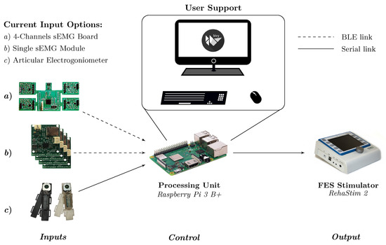 - Rossi, F.; Rosales, M.R.; Motto Ros, P.; Demarchi, D. Real-Time Embedded System for Event-Driven sEMG Acquisition and Functional Electrical Stimulation Control. In Proceedings of the 2019 International Conference on Application in Electronics Pervading Industry, Environment and Society, Pisa, Italy, 11–13 September 2019. [Google Scholar]