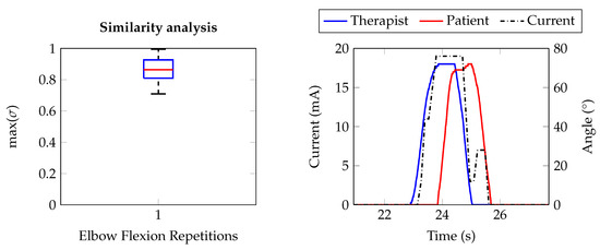- AROM evaluation (optional): The maximal Absolute Range of Motion (AROM) of the involved articulation has been computed by processing the angular data of both therapist and patient. This measure standardizes the FES application and provides a comparison feedback between the voluntary movement and the stimulated one. We defined it as an optional step since the use of the electro-goniometers is not mandatory.
